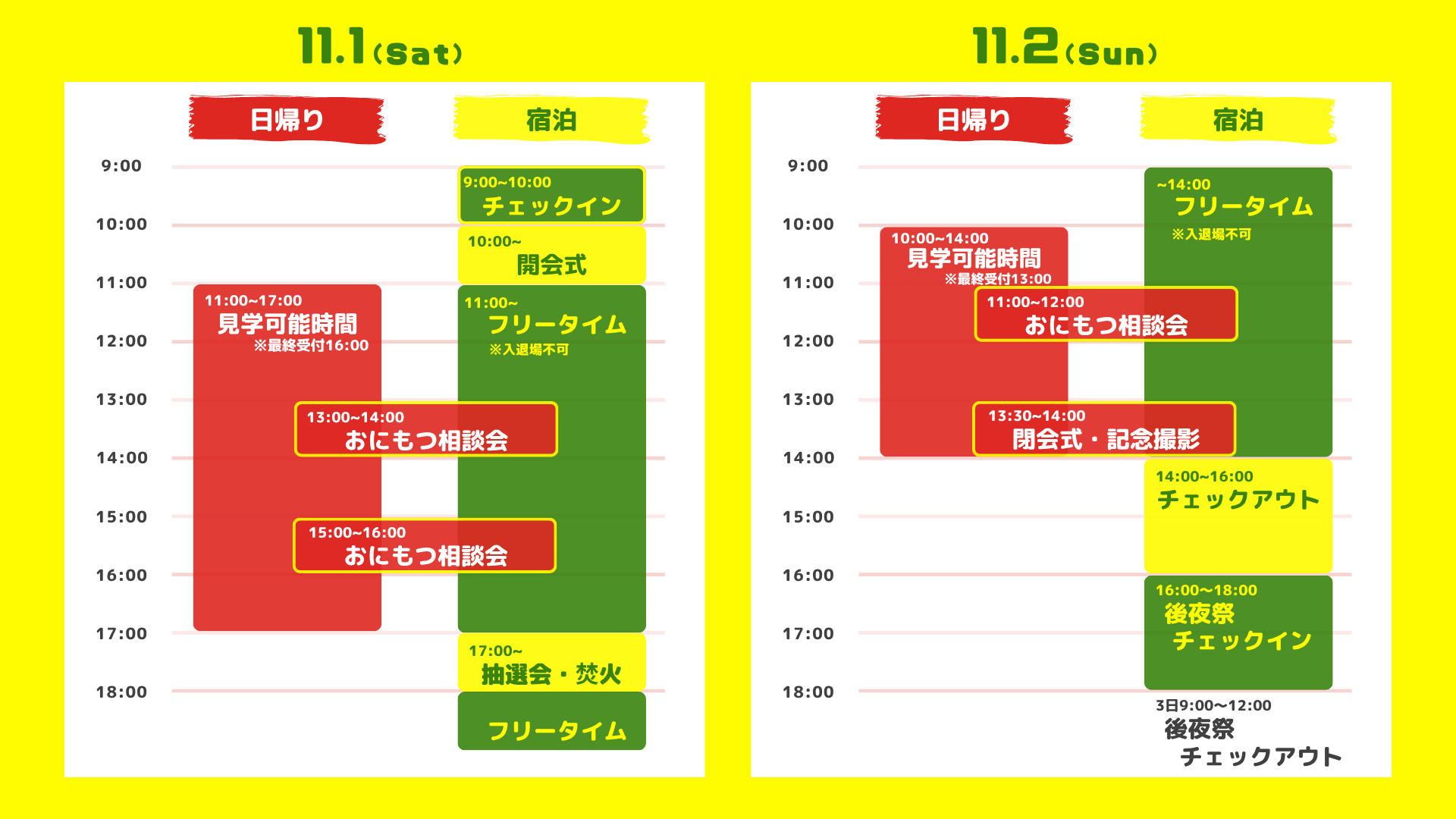 チェックイン :11月1日(土) 9:00~10:00